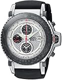 - Stainless steel case; silver & black dial; date function; chronograph functions