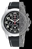 - Stainless steel case; black dial; date function; chronograph functions