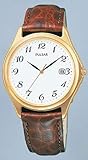 - Gold-tone-Stainless-steel case; white dial; date function